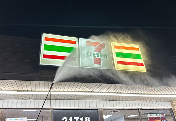 Our gas station signage cleaning and signage pressure washing services use adjustable 250°F steam, safe for vinyl, plastics, LEDs, and painted surfaces. Whether it’s 10 feet or 300 feet in the air, our team provides commercial sign cleaning, oxidation removal, and grime buildup treatment — all without damaging materials or disrupting operations.
